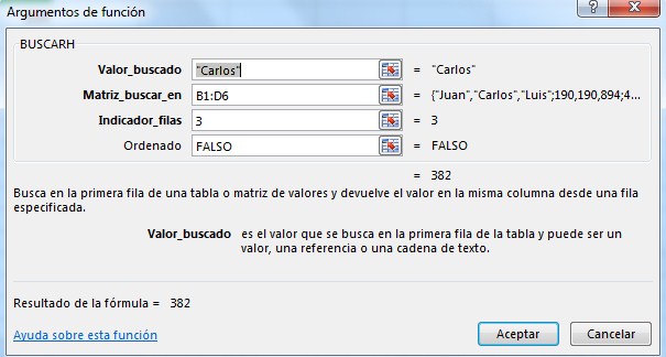 Ordenado: Es un valor lógico que especifica si la formula debe localizar una coincidencia exacta o aproximada. Tiene dos opciones VERDADERO y FALSO. Si es VERDADERO, devolverá una coincidencia aproximada. Si es FALSO, la fórmula devolverá una coincidencia exacta.