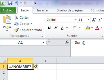 2. Error #¿NOMBRE? : Aparece cuando se digita mal el nombre de una formula o cuando la formula no existe.
