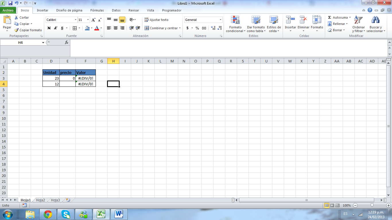 4. ERROR ¡DIV/0! : Excel muestra este error cuando se Divide por 0 o cuando se divide por una celda vacia