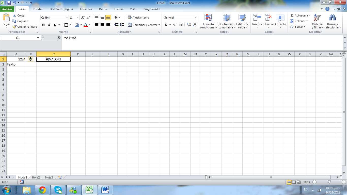 5. ERROR #¡VALOR! : Este error aparece cuando le damos a la formula un argumento diferente al que espera.